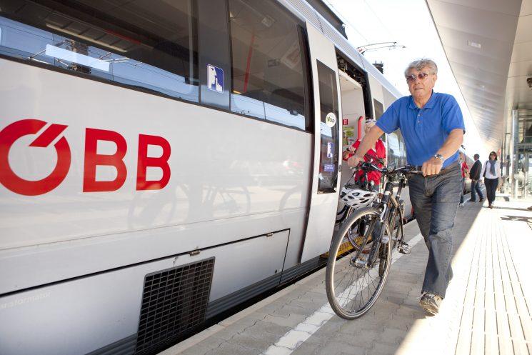 Die Fahrradabteile im ÖBB-Railjet befinden sich im ersten Wagen hinter der Lok und bieten Platz für fünf Räder. Auf der Südstrecke zwischen Wien, Villach und Lienz bzw. Venedig sind alle Fernverkehrszüge mit Fahrradabteilen ausgestattet und ermöglichen so zum Beispiel eine Tour auf dem Drauradweg. Wenn du entlang der Mur in die südsteirischen Weinberge radeln möchtest, bietet sich Graz als Ausgangspunkt an.