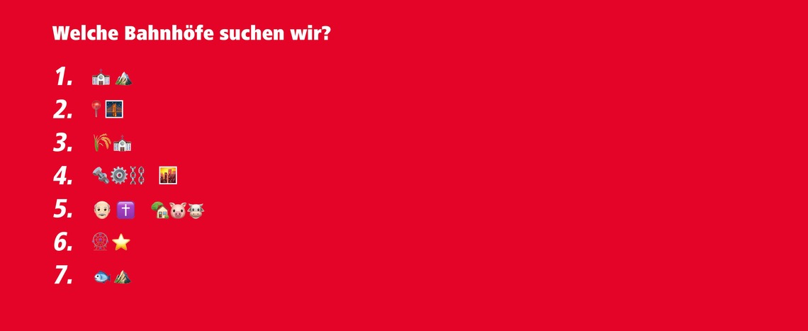 Den Welt-Emoji-Tag haben wir zum Anlass genommen, uns auf Facebook und Twitter ein kleines Ratespiel zu unseren Bahnhöfen einfallen zu lassen. Kreativität war gefragt – von uns und von euch.