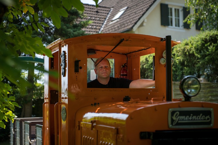 Er hat etwas, wovon viele Bahnbegeisterte nur träumen können. Harald Stotz ist stolzer Eigentümer einer echten Eisenbahn, die rund um sein Haus fährt.