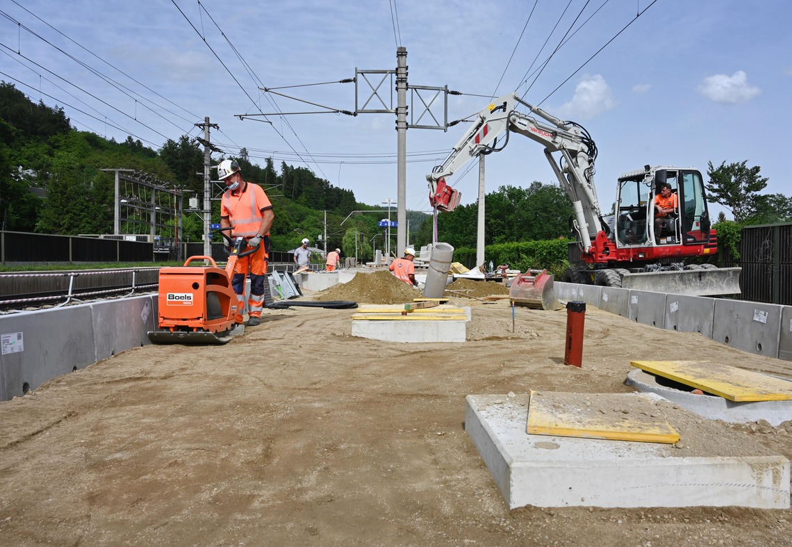 Die jetzt laufenden Arbeiten dauern noch bis 12. Juli. Nach dem Sommer gehen sie von 1. September bis 12. Dezember 2020 weiter. Die Arbeiten finden in der Regel von Montag bis Freitag von 07:00 bis 18:00 Uhr, teilweise aber auch an Wochenenden sowie vereinzelt auch nachts, statt. Während der Umbauarbeiten wird der Zugbetrieb eingleisig geführt. Bitte beachtet daher allenfalls geänderte Wege. Während der Bauzeit steht eine eingeschränkte Anzahl an Parkplätzen am Bahnhof zur Verfügung.