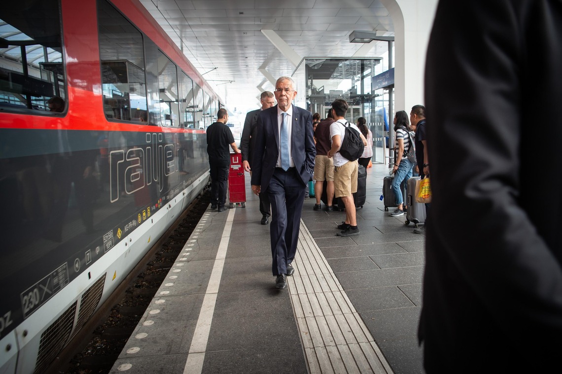 Wir nutzen die Bahn, um möglichst klimaschonend zu reisen. Wir versuchen innerhalb von Österreich, wann immer es möglich ist, mit der Bahn zu reisen. Etwa für die Fahrt zu den Bregenzer Festspiele oder zur Klimakonferenz ins polnische Kattowitz und zuletzt sind wir eben mit dem Nachtzug nach Brüssel gereist.