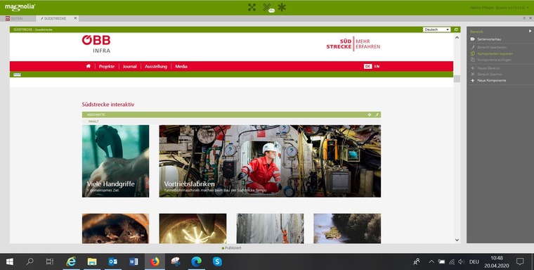 Meine Hauptaufgabe ist Fehlermeldungen zu finden und sie zu korrigieren. Das können zum Beispiel defekte Links oder fehlerhafte Bilddateien sein. Keiner möchte bei dem Klick auf einen Link in ein „schwarzes Loch“ fallen und anstehen. Dabei benötige ich die Programme - „Siteimprove“ und „Magnolia“. Diese scannen die Webseite nach bestimmten Parametern. Nachdem die Überprüfung abgeschlossen ist, versuche ich die unterschiedlichen Fehlermeldungen zu beheben. Außerdem prüfe ich die Webseiten auch auf Benutzerfreundlichkeit. Das ist für einen guten Webauftritt besonders wichtig. Bei der Benutzerfreundlichkeit achtet man darauf, dass die Homepage möglichst verständlich und unkompliziert dargestellt ist. Derzeit arbeite ich intensiv an einer digitalen Darstellung zur den aktuellen Bauaktivitäten der Südstrecke. Geplant ist eine Mischung aus Webseite und Online-Magazin.