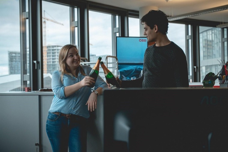 Nach 4 Monaten bei den ÖBB lässt sich sagen, dass wir einen umfangreichen Einblick in eines der größten Unternehmen Österreichs bekommen haben und dabei viel für unsere berufliche Laufbahn mitnehmen konnten. Mit Abschluss des Praktikums haben wir uns nicht nur einen weiteren Eintrag in unserem Lebenslauf erarbeitet, sondern sinnvolle Arbeit geleistet und dabei auch noch einige Freundschaften geschlossen 🤗 😻. Umso mehr hat es uns gefreut, dass wir zum Abschied – wie es sich gehört – mit dem ein oder anderen Gläschen Sekt gefeiert wurden.