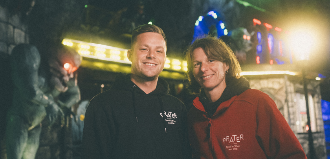 „Ja, das heißt bei uns Bahnhof. Wir sind auch eine Bahn. Geisterbahn, das steckt ja schon im Namen drinnen“, lacht Katja Kolnhofer, die das Geisterschloss in der vierten Generation betreibt. „Wir sind die älteste Geisterbahn Österreichs und die zweitälteste der Welt“, verkündet sie stolz, während ihr Sohn Philipp Kolnhofer der Dritte ergänzt, dass es zwar nicht die älteste, aber definitiv die beste Geisterbahn sei.